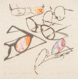 Here we have a much more pared-down example of the artist's work from the last chapter of his career. The work features five pairs of eyeglasses scattered about, each varying in style. Curiously, the left lens on three of the pairs are filled with frenetic dashes of tangerine, cherry red, and periwinkle, perhaps mimicking 3D glasses.