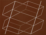 âBands/Posts - P1, F3, I2â is an output from Alber's 1972 portfolio "Formulation: Articulation". The artwork features stark white geometric linework contrasted against a lustrous burnt-umber backdrop.Â