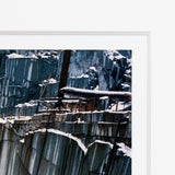 These images of cracked, fragmented and abandoned terrains looked not dissimilar to a Riopelle painting realized in rich whites, grays with stabs of saturated colors.