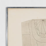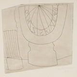 "Turkish Sundial and Column" exemplifies his aesthetic explorations. This etching comes from a portfolio of ten works, each exploring Greek and Turkish forms. The lines of the column and sundial are applied with differing perspectives, creating an effect of movement and depth. The plate's shape and form comes into play in this composition, emphasizing the illustrated elements.