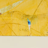 Executed in gouache, this work on paper echoes the signature layering and depth of his paintings. Textured segments, accented with cyan and punctuated with faint lines, come together in a harmonious composition. The viewer experiences a sense of visual depth as they piece together the painted elements, while simultaneously feeling the artist's spatial experience at the time of creation.