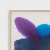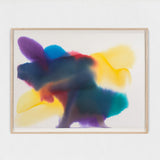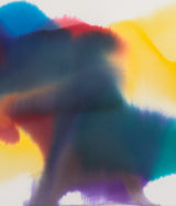 "Phenomena: Sun Stalker" is a paradigm of Jenkin's aesthetic. Featuring complimentary sections of color, carefully layered pigment flows and mixes. Rich purples, blues, and reds combine in a murky central section, accented by bright yellow on either side. Jenkins offers a strikingly balanced composition full of light and movement in this phenomena(l) watercolor.