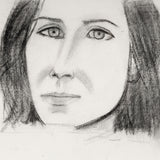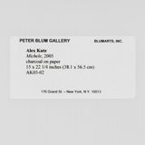 Michele's strong presence is certainly captivating, leaving the viewer to imagine her biography and inner thoughts. A striking and intimate portrait, this charcoal drawing is exemplary of Katz's ability to capture the essence of his subjects.