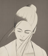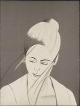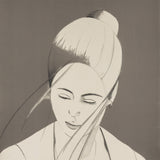 This image is tender, and brimming with a deceptive detail despite the mostly flat planes. With downcast eyes, the figure basks in the bright sun--evident by the high contrast present in the print. Tendrils of hair have fallen out of her bun, and brush against her face as they move with the breeze. There is a depth and complexity to this figure, illustrated through the atmosphere Katz has implied in this print. Â
