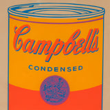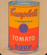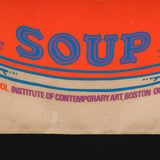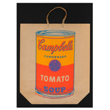 In 1965, Warhol began to create soup cans in neon colors. In conjunction for an exhibit at the Institute of Fine Arts (Boston), he produced a limited number of silkscreen shopping bags with his beloved Campbell's soup in bold neon anchored by the company logo in royal blue and grape purple.