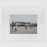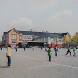 In this photograph of children playing in a sunlit schoolyard, Wall employs his characteristic method of staging everyday scenes with non-professional actors to produce what he calls "near documentary" images. Though the figures seem caught mid-motion, their crisp shadows betray a moment carefully composed rather than spontaneously captured. Many of his images reference or depict life in British Columbia.