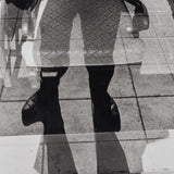 With an acute awareness of relational juxtapositions, Friedlander captures his scenes with a distinct vision of the world. Within the tableaus, he often incorporated his image–though his approach to self-portraiture is quite unconventional. Often presented in a window's reflection or a silhouette, the artist incorporates himself seamlessly into the layered, complex scenes. Sometimes–as in this image–his presence is a central element. By recording his presence in segmented ways, Friedlander injects his photos with a surrealistic flare.