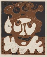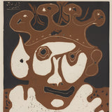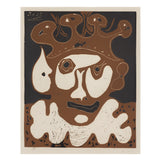 Created in 1965, "TĂȘte de Bouffon" belongs to Picassoâs prolific late period, a time marked by an outpouring of prints in which he revisited lifelong motifs with a looser, more distilled graphic language. In these years, he returned repeatedly to the commedia dellâarte figures of his earlier decades, reworking them with renewed immediacy and humor.