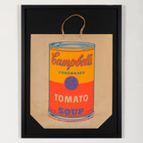 In 1965, Warhol began to create soup cans in neon colors. In conjunction for an exhibit at the Institute of Fine Arts (Boston), he produced a limited number of silkscreen shopping bags with his beloved Campbell's soup in bold neon anchored by the company logo in royal blue and grape purple.