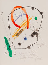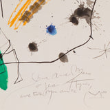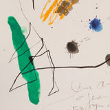 This print is a paradigm of his work and artistic expression. It is from the “Quelques Fleurs” portfolio. The prints in this portfolio were based on watercolors from his book “Je Travaille Comme un Jardiner” (“I Work Like a Gardener”) that were reproduced by Miró as an edition of prints. Each print in this portfolio was dedicated to one of his friends.