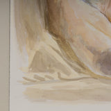"Greek Statue" depicts a classically posed marble statue. The male figure is crouched over a bent leg with a downcast gaze. Despite being made of hard stone, Tod's watercolor depicts the statue with an ethereal softness. Tod's palette is subtle yet evocative and effective in conveying the depth and detail of the statue. Like the best of her work, the statue is realized in her signature version of soft realism.