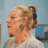 This painting is somewhat of an anomaly in Tod's oeuvre. Typically her images of museums are completely void of any human presence. Conversely Tod's portraits are notable for their subtle backgrounds, giving priority to the character of the subject. Thomson was not only one of Canada's most accomplished arts administrators but also a friend and champion of Joanne Tod. During her era at the National Gallery, the museum had moved to their famous site on Sussex Aveneu...so it is only fitting to have a portrait of Thomson that clearly places her in the actual museum.