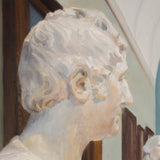 In this striking portrait, Tod depicts art world legend Shirley Thomson gazing at a marble bust. She stands in the National Gallery of Canada, the museum that she directed from 1987-1997. Light pours in from the skylight above, dissolving into the grand hall that extends behind her. While Thomson–along with the bust–is depicted with tremendous detail, the plinth and paintings behind them fall into abstraction, standing in as a reference to what is there, not as a representation.