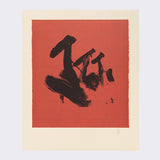 "Flags" is a superb impression from Motherwell. Featuring bold, black shapes against a powerful field of saturated red, this work is not easily forgotten. The dark brushstrokes are palpable, their edges bleeding into the crimson backdrop. Elegant and raw, this print masterfully balances the sprits of abstract expressionism with minimalism.
