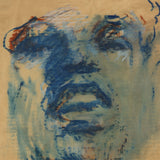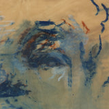 This work on paper depicts a feeling present at the funeral. It could be Banquo's soul leaving his body, or a distressed guest in anguish. With blue, teal, and red hues fading into a textured page, this work is hauntingly enticing.