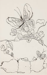 This intricate drawing is rendered with a gentle whimsy, the creeping vines moving across the page embellished and enlivened with butterflies of different sizes and small new blooms. This is a paradigm of Warhol's commercial work; full of delicate joy and splendor.