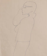 Unique to this drawing is the subtle presence of the child, who rests gently against the woman's chest in a tender embrace yet is almost entirely abstract. This maternal exchange represents an unexpected deviation from Warhol's typical subject matter, possibly serving as a tribute to his own mother, Julia Warhola, whom he admired deeply.