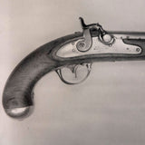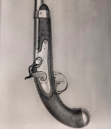"Pistol" stems from the "Knives and Guns" era, most likely as a reference or study. Presented with authority, the image features the profile of a New England holster pistol, a model that dates back to 1815. While Warhol was most often obsessed with the culture of his day, he was simultaneously a student and collector of the past. In 1986, for example, he released the "Cowboys and Indians" portfolio which featured historical figures from the 19th century.