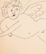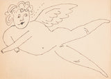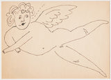"Winged Putti" is a delightful paradigm from this era. A jolly and elegant cherub fills the composition, hovering across the sheet with glee. Whimsical details, such as the cherub's voluminous curls and heart-shaped lips, draw the viewer into Warhol's charming and imaginative world.