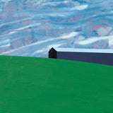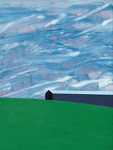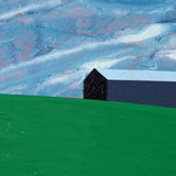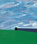 "Oro Barn" (1999) is a particularly fine example from the series. Here the artist presents his beloved icon with a bold colour scheme and flattening depth. The contrast between the simplicity of the barn with the gestural, almost expressionist or painterly sky makes this a notable and impactful example.