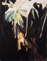 Combining representational painting with expressive abstraction, Fisherman evokes the lush tropics of Trinidad and captures the charged moment between fisherman and viewer as he drags the bird along the shore. His choice of title is not entirely referential, enhancing the ambiguity of his memory and leaving room for interpretation.