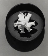 "Gardenia" is one of thirteen images from the Y Portfolio, featuring a fragrant and graphic flower. Shot overhead, this tranquil image captures a delicate flower subtly floating in a dark, contrasting bowl. Aside from the flower's shadow below, the still water is nearly inconspicuous, contributing to the air of grace and elegance that this piece evokes. While the depiction is straightforward, Mapplethorpe's contrasts lead to a more ambiguous image; is this actually a flower or some alien specimen being examined?