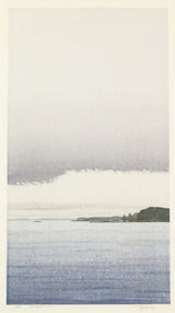 This ethereal woodblock print perfectly captures the wet elements evocative of the BC coastline when land, sky and sea are united in experiencing the prevailing dampness of the atmosphere.