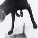This photograph is from Wegman's "Improved Photographs" series. Featuring a Weimaraner and a kitten in motion, this untitled work has a striking contrast from the artist's typically more staged scenes.