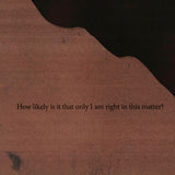 This print was commissioned by Studio Voltaire, one of the UK’s leading not–for-profit arts organizations. This is the companion piece to the edition Tillmans produced for Texte Zur Kunst in 2018, and poses the question: How likely is it that only I am right in this matter?, prompting the viewer to explore the grey area between truth and opinion.