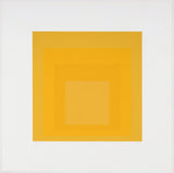 This is a classic and instantly recognizable example of Albers' signature motif from the 1960s. Hypnotic, simple, and striking, Albers uses color and geometry to maximum effect, creating an image that seems to transmogrify itself with each passing moment. In this iteration, an array of yellow squares punch through one another. Evoking the earthy yellows of marigolds, mustard seed, and bumble bees, this technically impressive print is a captivating composition to behold.Â