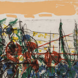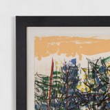 "Le Sablier" is from a small 1979 portfolio published by the illustrious Maeght. This particular work boasts a surprisingly harmonious palette of blue, green, red, yellow, taupe, and peach.