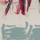 "Le Sablier" is from a small 1979 portfolio published by the illustrious Maeght. This particular work, with its beautiful palette of pink, orange, black, and sage, almost seems to foreshadow Riopelle's last body of work, where he includes figuration and interprets various birds of his native Quebec.