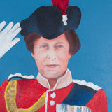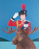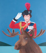 This playful piece depicts Queen Elizabeth mounted on a moose, a moment that illuminates the cheeky earnestness that runs throughout much of Pachter's portrait work. This amusing combination has been repeated throughout his oeuvre and across mediums. Click here and here for examples of the duo in Pachter's prints.