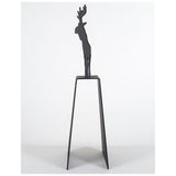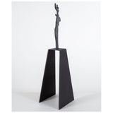 Using the principles of classical perspective, the steel figure is flattened to appear as a two-dimensional image.Â