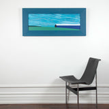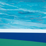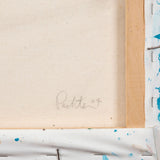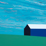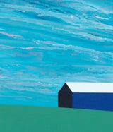 In this exemplary painting, a paradigm from the "Barn" series, Pachter uses a rich palette of royal blue, turquoise, navy, cornflower, and a hint of salmon to depict a broad swath of sky. Is this sky tumultuous or calm and hazy? Pachter admitted to referencing the expressionistic leanings of the Group of Seven when creating his Barn paintings of these dramatic skies.