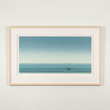 A sense of stillness pervades the scene, with a solitary boat in the far distance serving as the only indication of life. Even so, the boat's presence seems to be enveloped in the expansive natural landscape, emphasizing the power and influence of the environment.