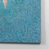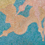 The surface of the canvas is enveloped in tiny, weighted flecks of paint that have been layered to create an incredible texture. This application of paint, which appears to be chenille-like, recalls both the atmospheric pastel palette and impressionistic effects made famous by Claude Monet.