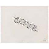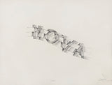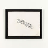 "Nova" offers a rare glimpse into General Idea's creative process and ideation from the era. In this work, the word 'Nova' is stretched diagonally across the page and fragmented by three horizontal lines that run through the letters. The lines divide the letters into four segments, creating varying perspectives at each intersection and an unexpected graphic appeal.