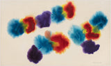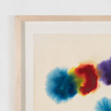 This work is a paradigm of Iskowitz's watercolors from the late 1970s. Made by dropping color onto dampened paper, Iskowitz's watercolours offer distinctive colourful clusters that vibrate across the page. Iskowitz was measured in his process so that each chromatic patch came across clearly, not muddied with one another. In "Red Blue," Iskowitz uses a starbursts of aquamarine blue, yellow with red on top, and a deep purple to create a thoughtful arrangement of color, shape, and process: a true celebration of color and medium.