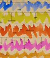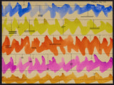 This bold work on paper encapsulates Town's effortless dynamism in color and form from this period. Florescent washes of watercolor stretch and contract between rows that resemble sheets of music. The forms pulsate, moving across the composition in a synesthetic interplay of color and sound.