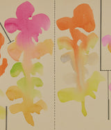 This bold work on paper encapsulates Town's effortless dynamism in color and form from this period. Fluid, botanical forms rendered in florescent washes of watercolor blossom between vertical rows. With minimal detail, Town masterfully captures a powerful sense of upward motion within the composition.