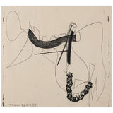 While later Single Autographic Prints were characterized by layers of color and collage elements, this untitled work (nicknamed "Lines and Loops") is noticeable for its spontaneity and simplicity. Town would both incorporate actual string into these works, but here a printed line emulates its form and character.