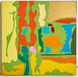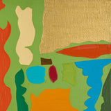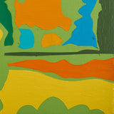 The flat plane and sprawling psychedelic shapes recall a topographic map as if viewed through the lens of a kaleidoscope. The result is a spirited homage to the park, reflecting the artist's pure joy and ecstasy in response to the subject matter.