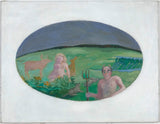 This untitled work is richly colored and conveys elements of fantasy, myth and magic. It is a fine example of Wieland's style and interests from the last period of her fascinating life.