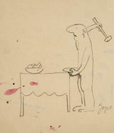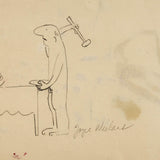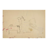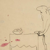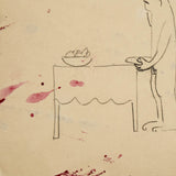 This intimate and impish drawing serves as a sly glimpse into Wieland's inner world, revealing her dark and mischievous edge through a cartoon-like aesthetic. In this work, an animated figure stands in a domestic setting, self-flagellating at the dinner table. The drawing elicits a range of reactions: amusement, unease, and perplexity-leaving the viewer to question the mysterious and uncanny scene unfolding before them.