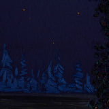 The surrounding field is desolate and still, shrouded beneath a midnight sky that only breaks by the glow of delicate golden stars. Meanwhile, the ground is illuminated by wispy layers of neon green mist that rise from the earth, imbuing the scene with a supernatural glow.