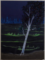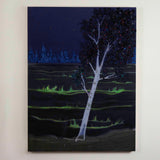 Created in 2020, "Not Long" is a striking example of the artist's bold transition to a deeper, more somber palette in recent years. In this work, a white birch (one of his favorite motifs) stands crokedly in the foreground of the composition, its candied leaves brought to life through a bold and thick impasto.