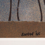 This piece is an excellent example of Snow’s foldages, a significant breakthrough for the artist that disrupts conventional art categories by producing a hybrid of collage and sculpture. The delicate folds in the paper transform the work into a curvilinear form, meandering over the figure’s silhouette. The physicality of this piece personifies the woman as her figure gradually distorts and diminishes with each “step.”