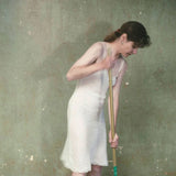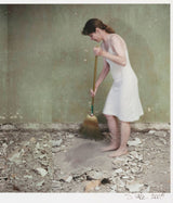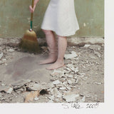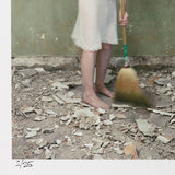 In this image, Lake presents a double image of herself in a white slip dress, sweeping a dusty floor filled with rubble. The photo comes from a site-specific installation presented in partnership with the Art Gallery of Ontario, taken during the last month's of the museum's major renovation project.