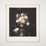 Displayed in a vase, the arrangement is illuminated by a single and direct light source that is further intensified by Scherman's signature midnight background, evocative of chiaroscuro.